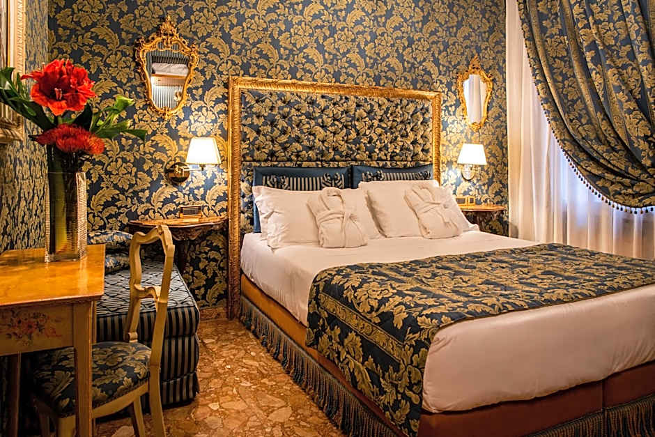 All Venetian-style rooms have floral furnishings and a private bathroom with shower. Some rooms offer views of Campo Santo Stefano square.
